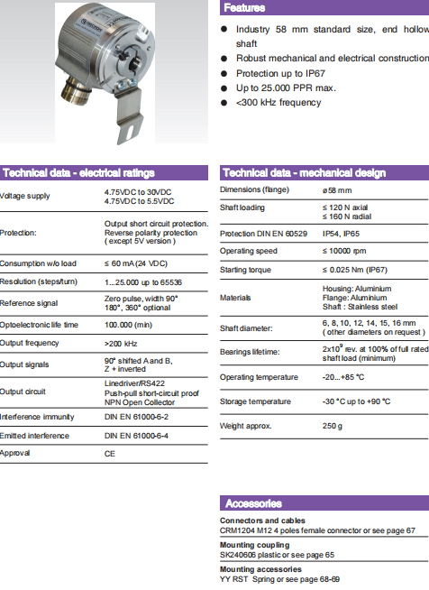 空載電流:≤ 60mA(24 VDC)   分辨率(脈沖數/轉):1... 25000