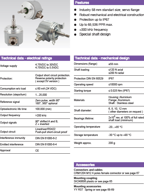 | ○ | 輸出頻率:>200 kHz | ○ | 輸出信號:90° 移相 A、B、Z ,+ 取反 | |||