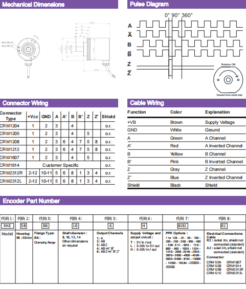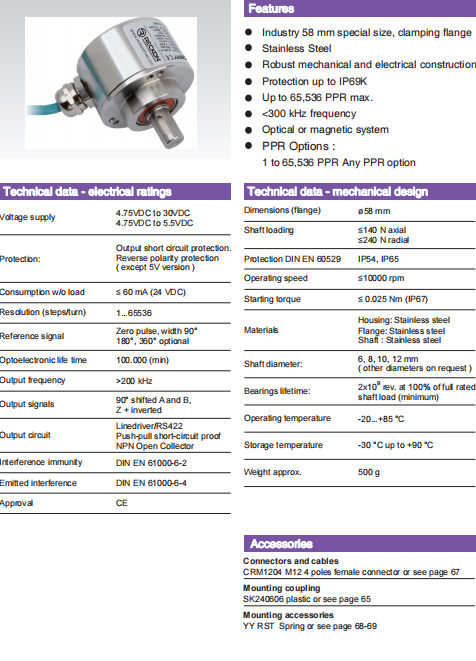 | ○ | 空載電流:≤ 60mA(24 VDC) | ○ | 分辨率(脈沖數/轉): 1... 65536 | |||